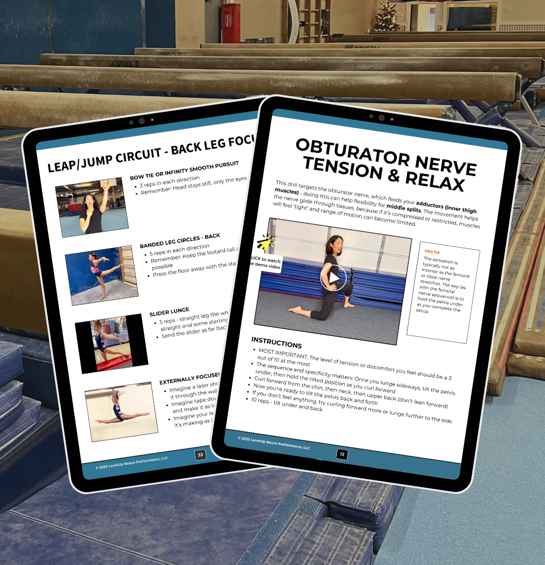 This guide is jam-packed with proven drills that I’ve used with hundreds of gymnasts and dancers. Get ready to witness change at the speed of the nervous system! (And fewer deductions!)
